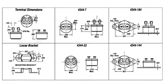 As a motor winding thermostat, the Klixon 4344 can be mounted conveniently on the end turns of the motor windings. The small size and variety of available brackets afford flexibility in the method of attaching the thermostat. The hermetic construction allows the thermostat to withstand dipping and baking operations on the windings.